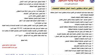 بسم الله الرحمن الرحيم هيئة مياه ولاية الخرطوم تأهيل شركات ومقاولين وأسماء أعمال لمختلف ال…