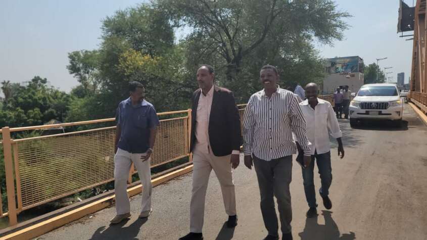 كما وقف خلال جولته التفقدية على مشروع صيانة جسر النيل الأبيض الذي تعرض لاصابات في الهوائيات مما استدعى فريق التدخل لأعمال الصيانة اللازمه عبر الشركات المتخصصة في أعمال اللحام وشد وربط الخوابير