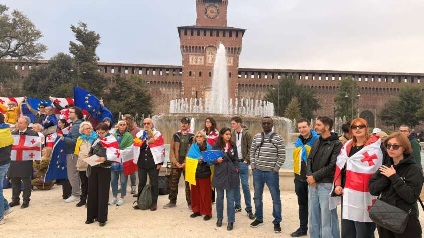 في قلب مدينة ميلان الإيطالية، وأمام أسوار قلعة سفورزا التي شهدت عبر قرونٍ صعود الممالك وسقوطها، وقفنا اليوم — برفقة عدد من نواب البرلمان الأوروبي وممثلين عن منظمات السلام الدولية — في وقفة تضامنية تؤكد أن صوت الضمير الإنساني لا يجب أن يصمت أمام مآسي الحروب، وأن الدفاع عن السلام ليس خيارًا سياسيًا، بل واجب أخلاقي.