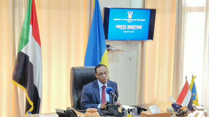 سفير السودان برواندا يقدم تنوير للاعلام بانتهاكات المليشيا ويكشف استمرار الدعم الإماراتي العسكري والسياسي