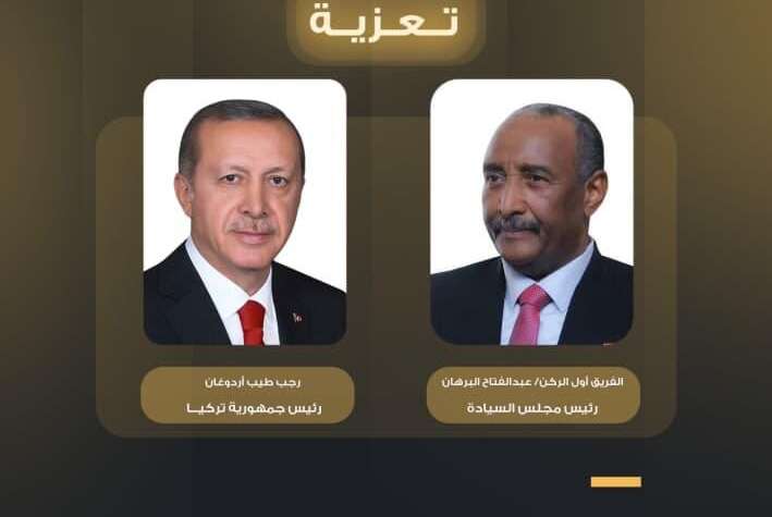 وأعرب البرهان عن تعازي السودان حكومة وشعباً، ومواساته للشعب التركي في هذا الفقد الجلل الذي راح ضحيته ٢٠ شخصا، وقال رئيس المجلس السيادي في برقيته ” تلقينا ببالغ الأسى والصدمة نبأ تحطم طائرة الشحن العسكرية التابعة للقوات الجوية التركية والذي أسفر عن فقدان عدد من العسكريين الأتراك “.
