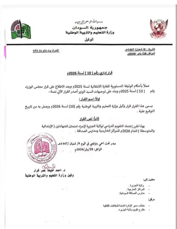 عاجل ..تحديد امتحانات مرحلتي الأساس والمتوسط للمراكز الخارجية ومدرسة الصداقة