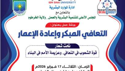 جامعة ابن سينا تنظم ورشة عمل حول التعافي الوطني المبكر بالخرطوم