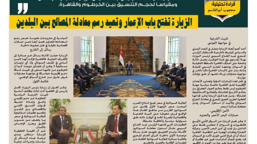 في ظل تعدد المبادرات الدولية وتضارب الأجندات الإقليمية تمثل القاهرة حاضنة سياسية مهمة للخرطوم ليس فقط بحكم الجوار الجغرافي بل بحكم التاريخ المتشابك والمصالح الاستراتيجية المشتركة ، ومن هنا فإن الزيارة يمكن قراءتها كخطوة لتعزيز العمق المصري في معادلة الصراع السوداني وتأكيد أن استقرار السودان يمثل مصلحة مباشرة لـمصر.