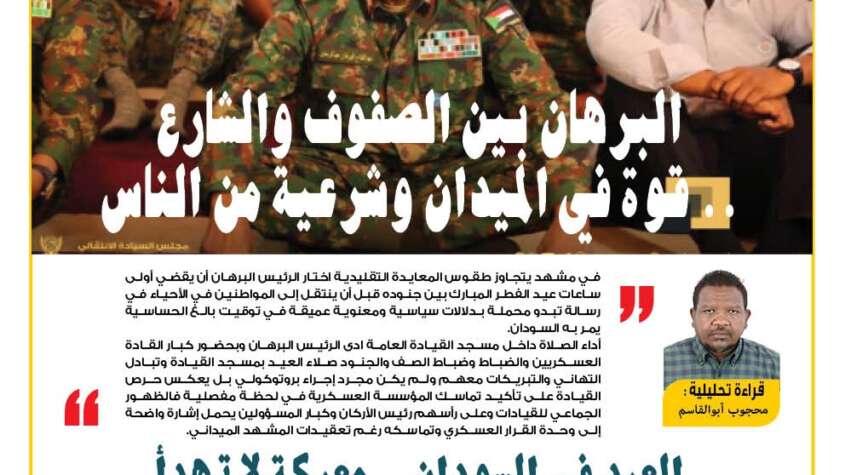 اللافت أن هذه المعايدة المزدوجة بين الجنود والمواطنين تعيد إنتاج صورة القائد الميداني من جهة والقائد الشعبي من جهة أخرى وهي معادلة يسعى البرهان إلى ترسيخها في ظل حرب لم تعد عسكرية فقط بل معركة على كسب الرأى العام وتعزيز الثقة، حيث نجد دائما الرئيس البرهان متواجدا وسط المواطنيين بكل امان وثقة بل يتعدى ظهوره ذلك إلى المدن والمناطق التي يتم تحريرها مباشرة.