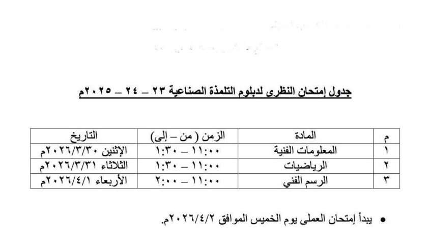 إعلان جدول امتحانات دبلوم التدريب المهني و التلمذة الصناعية