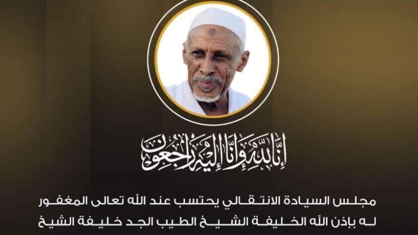 ينعى مجلس السيادة الانتقالي عند الله تعالى المغفور له بإذن الله الخليفة الشيخ الطيب الجد خليفة الشيخ ود بدر بأم ضوا بان. والذي وافته المنية إثر علة لم تمهله طويلا.